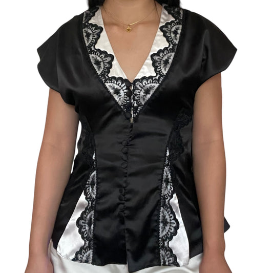 Satin Lace Tie Blouse