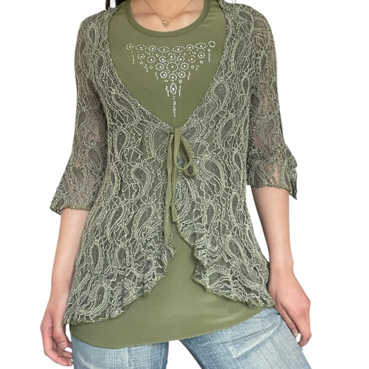 Lace Rhinestone 3/4 Sleeve Top